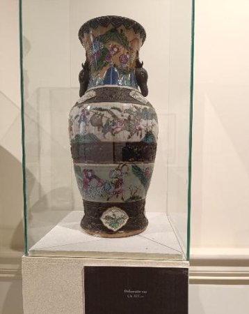 XIX əsrə aid digər keramik vaza üzərində əjdaha, gül və bitki təsvirləri yer almış, bu simvollar imperatorluq, güc və bərəkət anlayışlarını ifadə etmişdir. Sarı rəng isə imperator ailəsinə məxsus status göstəricisi olmuşdur. Atlı fiqurlar, dağ mənzərələri və yürüş səhnələri ilə bəzədilmiş ikinci vaza da o dövr Çin cəmiyyətinə dair sosial və mədəni məlumatları əks etdirmişdir.
